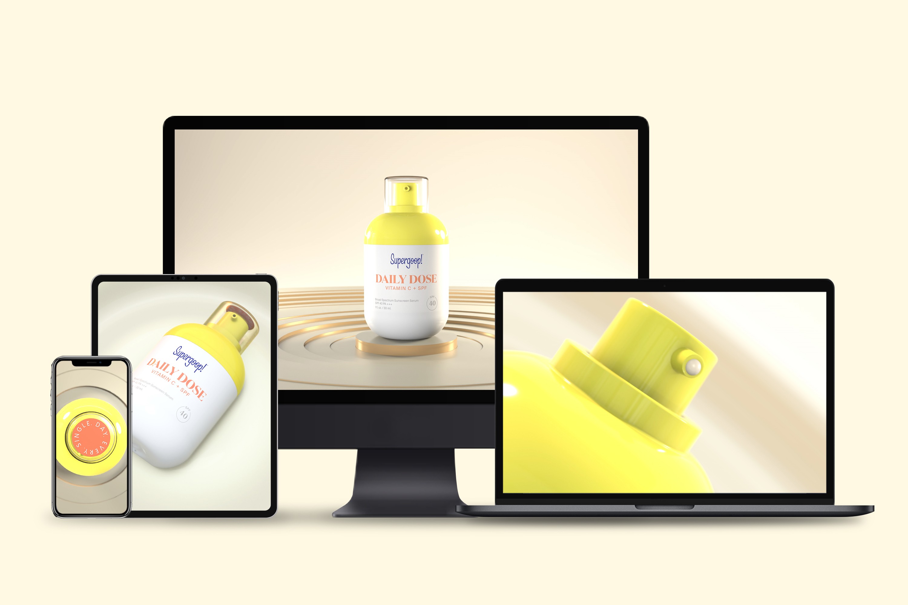 By creating 3D digital assets, we can create 3 identical social ads for different products.